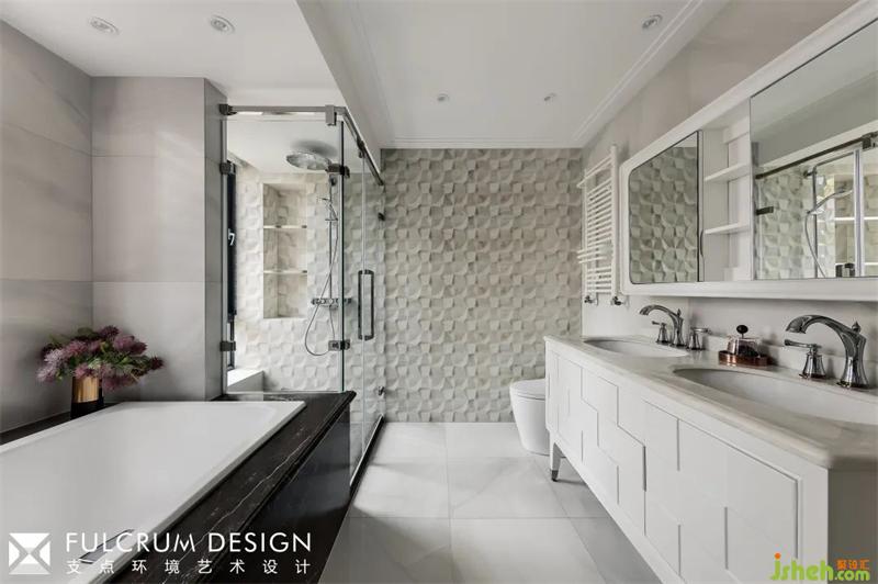 泡澡是業(yè)主一直以來的習慣,設計師特地把浴缸相對外置,與窗戶相接,營造更好的衛(wèi)浴氛圍,石材全包裹一是為了方便打掃衛(wèi)生,二是尊貴感的體現。