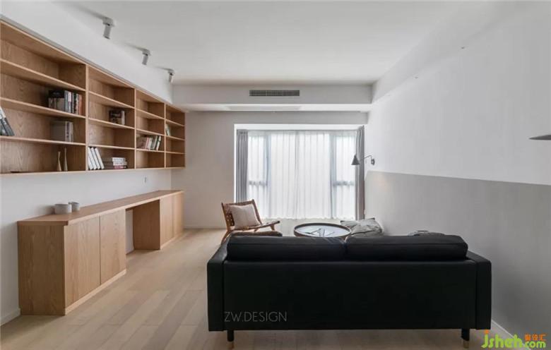 客廳將原有的陽臺連通,打破傳統(tǒng)格局,摒棄傳統(tǒng)客廳配置電視與電視墻,使用投影儀和幕布,收納起來,改造成一家人的休閑娛樂活動區(qū)利用客廳一整墻設(shè)計成書架去培養(yǎng)孩子從小的閱讀習(xí)慣,增加親子間的交流和家人間的陪伴