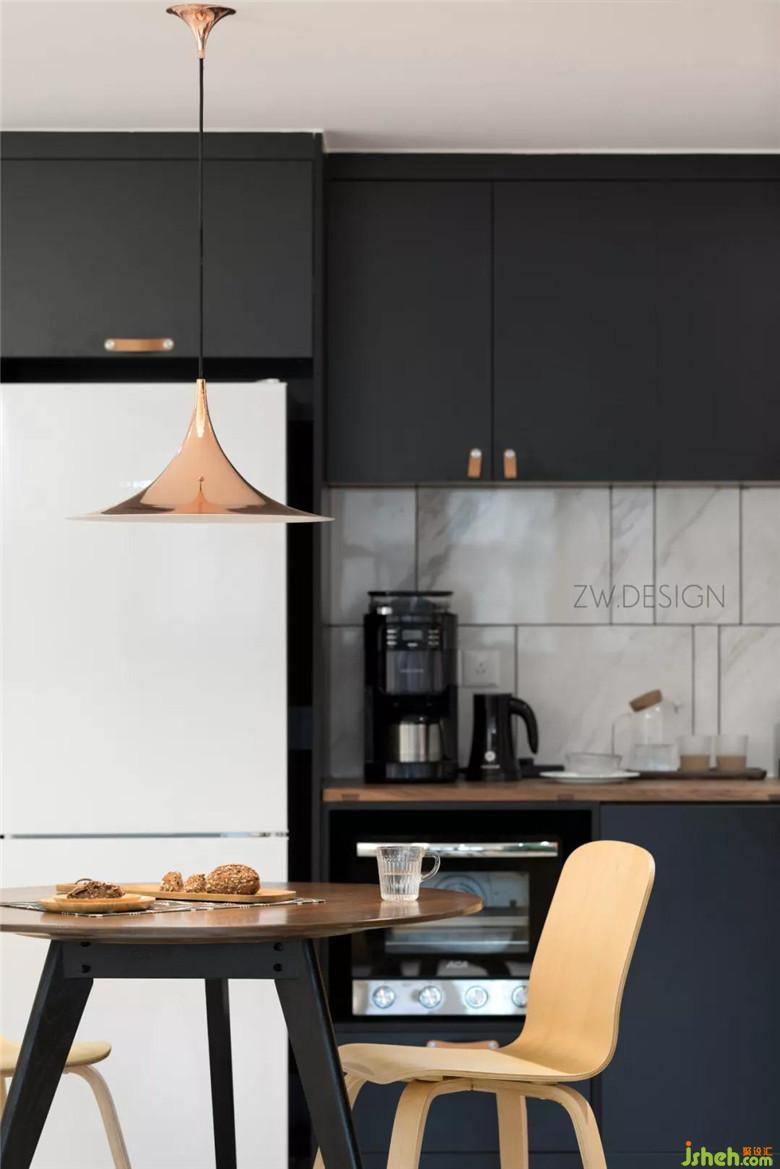 冰箱雖然被疏解到了餐廳新設(shè)立的西廚,但是依然被設(shè)計在距廚房最近的位置,照顧廚房的高頻使用。
