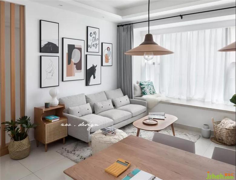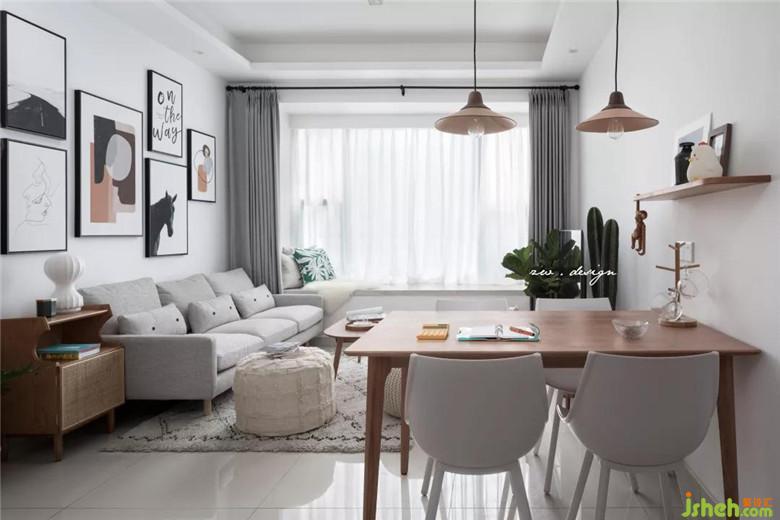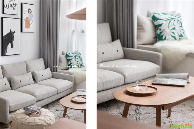 房屋實際面積不大,所以選擇給墻面留白,保持白色墻面的純凈和包容,家具以灰色、白色、櫻桃木為主。