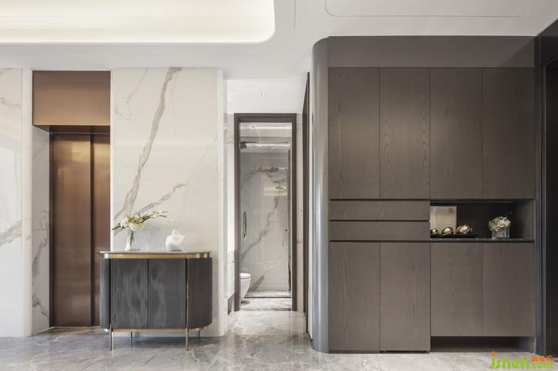 外在越被紛繁所擾,內(nèi)心就越向往愉悅寧?kù)o的格調(diào),走進(jìn)玄關(guān),脫下外套卸下一天的疲勞,別墅裝飾舒適地進(jìn)入和家人們的小世界。入戶玄關(guān)以木質(zhì)+金屬元素的結(jié)合點(diǎn)亮這方空間,再往里走便是6.6米挑高的客廳,極致的空間感,讓身心與視覺(jué)得到雙重休息。