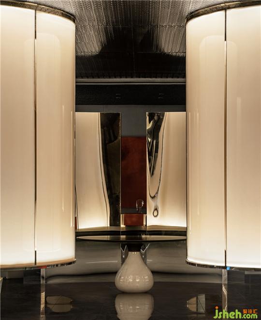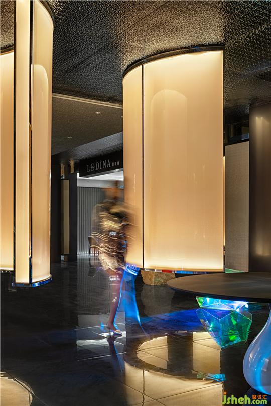 LEDINA提倡前衛(wèi)而簡(jiǎn)約的生活藝術(shù)?;谄放频奈幕尘跋?,展示廳設(shè)計(jì)以一種“未來的思考”來傳達(dá)品牌的理念主張。前衛(wèi)的思考離不開科技與信息化,現(xiàn)代鏈接未來,是過去通往未來的橋梁,通往無限空間,未知,科技,充滿魅惑與想象,誕生我們對(duì)未來,對(duì)家居環(huán)境的一種革新與探索。