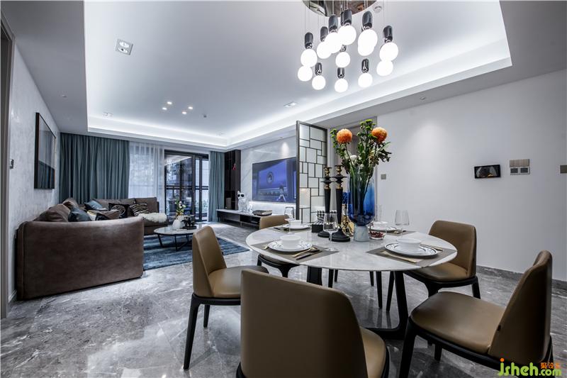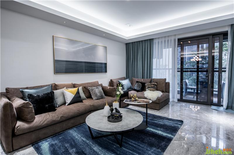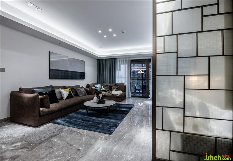 客廳以咖色、深藍、高級灰為主色調(diào)的空間,同時以白墻與屏風(fēng)打造了留白和含蓄的藝術(shù)。室內(nèi)設(shè)計師