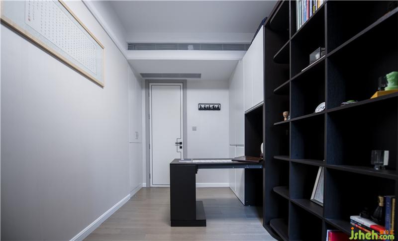 書房增加了空間的靈活度,可以自如收放的書桌與書柜讓空間靈活多變,在有客人來(lái)訪時(shí),可以變成客房。室內(nèi)設(shè)計(jì)師