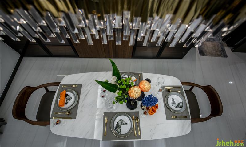 餐廳延續(xù)了客廳簡約干凈的線條,有利用原木材質(zhì)的溫潤打造舒適的用餐空間。這里點綴了更多暖色,注入了新的活力。