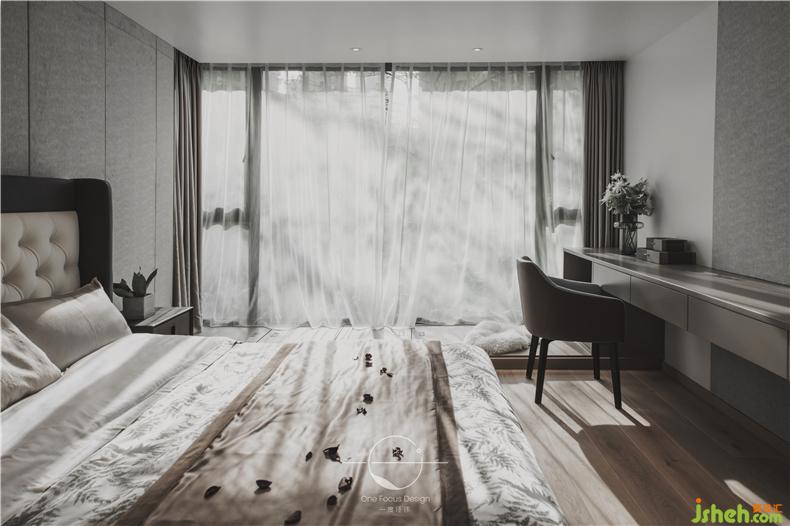 主臥的設(shè)計(jì)更表現(xiàn)了設(shè)計(jì)師手法的純熟和對(duì)生活的感知。主臥整體顏色偏灰,裝修設(shè)計(jì)風(fēng)格簡(jiǎn)約在這樣寧?kù)o的氛圍里主人能夠得到充分的休息。大大的落地窗則保證了白天的采光,光線透露窗簾,有一種別樣的溫柔。