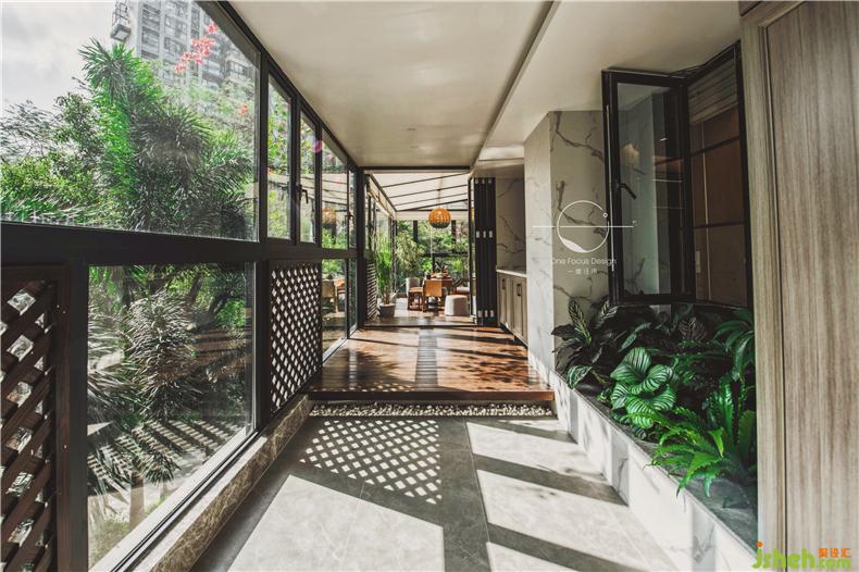 對于現(xiàn)代人來說,最能提升幸福感的莫過于一個大而美的陽臺。閑暇時眺望城市景色,是新的生活風(fēng)潮。設(shè)計師將原來空調(diào)井的部分用木地板覆蓋,連接起兩個陽臺,創(chuàng)造了獨(dú)一無二的詩意棲居地