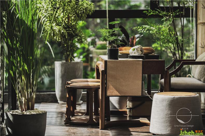 對于精心設(shè)計的茶室,設(shè)計師也考慮到了其喜靜的特點(diǎn)。主人想要靜心品茶時,只需將推拉門合上,這里就變成了一個風(fēng)景極具的茶室。