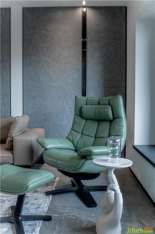 客廳沙發(fā)背景墻采用大理石搭配白色飾面板,和電視背景墻的大理石相呼應(yīng),簡(jiǎn)單干凈的線條劃分空間區(qū)域,不僅增加了客廳的美觀性和實(shí)用性,還將大平層空間大、視野佳的優(yōu)勢(shì)發(fā)揮到極致。
