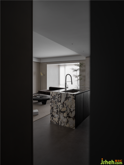 家是一面生活的鏡子,或是慌忙雜亂,或是安定沉靜,或是趨向物化,或是趨向精神。私宅設(shè)計(jì)空間會(huì)產(chǎn)生某種環(huán)境磁場(chǎng)而影響人的心緒,設(shè)計(jì)師幾乎將所有日常生活功能性都收納起來(lái),大面積的留白,使它呈現(xiàn)出一種簡(jiǎn)單清晰的確定性,以及一種想要閑下來(lái)做些什么的交互性,從而讓這個(gè)“家”產(chǎn)生一種放松得下來(lái)的安定感,以及某個(gè)時(shí)刻燃得起熱情的儀式感。