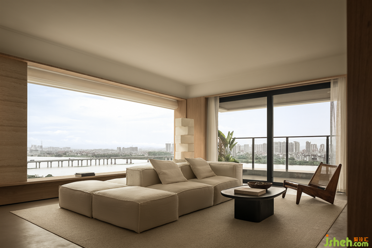 藏而通達,隱有乾坤。從玄關進入前廳,是一個聚合與流轉區(qū):私宅設計暗色木質條凳與淺色石紋壁爐形成與餐廳融合的第二玄關,新風與照明功能隱于天花圓頂之中,開合之間自由聯(lián)通廚房、客廳、臥室。動靜虛實,思深言淺,以至平和。