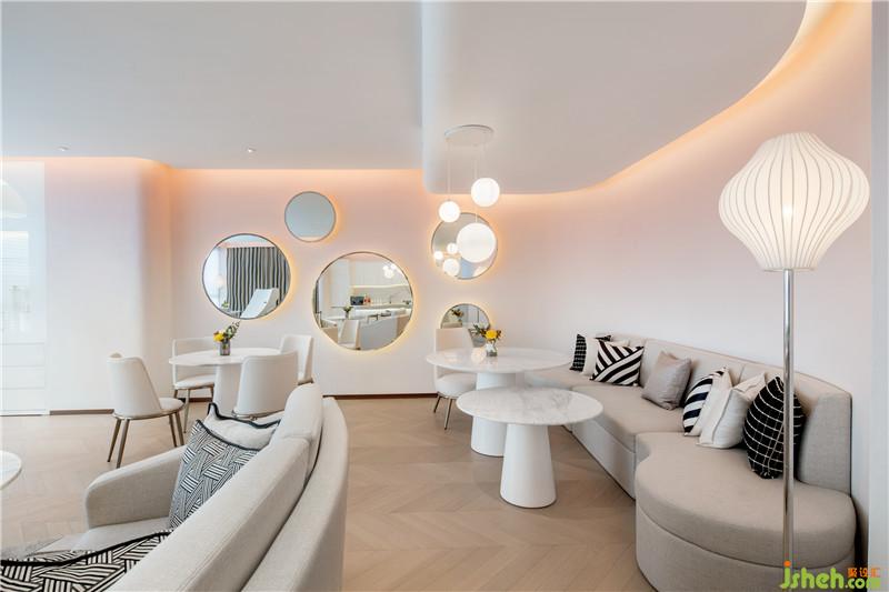 在入口處,花瓣造型與光源結(jié)合,朵朵繞蕊綻放,嬌美優(yōu)雅,展現(xiàn)簡(jiǎn)約優(yōu)雅的美學(xué)定位。