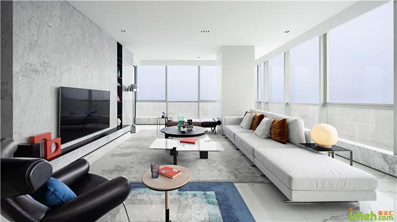 在保證一貫的現(xiàn)代風(fēng)格的基礎(chǔ)上,裝修設(shè)計增強了主要家具的造型感和戲劇感,例如客廳的單人沙發(fā)、客餐廳的燈具等,具有強烈的科技感;