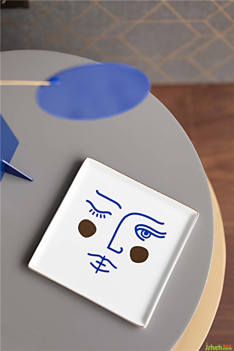 這種“沖突感”正是設(shè)計過程中刻意創(chuàng)造的“彩蛋”。兩間臥室呈現(xiàn)著一明一暗的對比效果:一間以藝術(shù)家的迷幻音樂題材作品揭開序幕,用少見的配色和材質(zhì)組合延續(xù)這種冷靜又神秘的氣質(zhì);另一間以大都會博物館大衛(wèi).霍克尼的作品海報點(diǎn)亮暗調(diào)的空間,以他標(biāo)志性的明快藍(lán)色和意思俏皮感增添了空間的趣味。