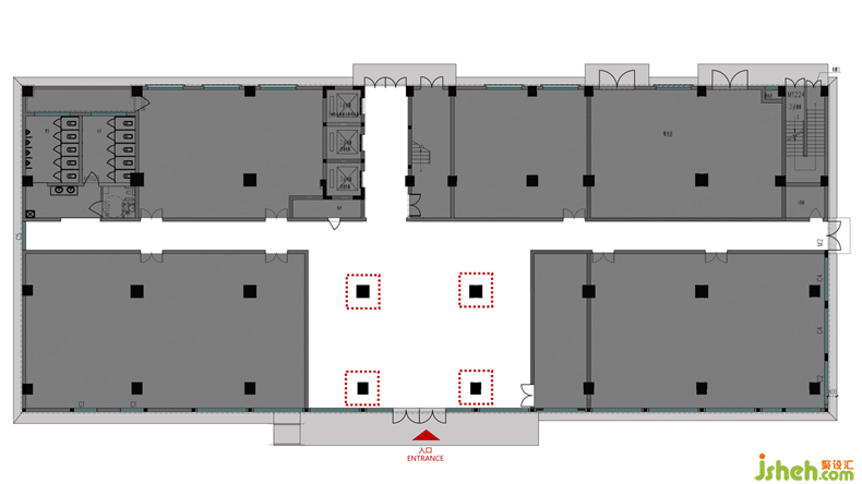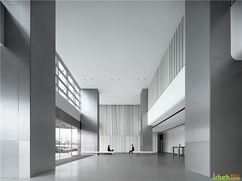 在空間布局上,WED中熙設(shè)計對原來上下兩層的大堂建筑空間的結(jié)構(gòu)進(jìn)行重新設(shè)計,對人流動線也重新規(guī)劃。原有空間中大堂中四根立柱孤立存在,連接橫梁阻礙視線破壞空間整體感,與外立面也毫無聯(lián)系,辦公室設(shè)計設(shè)計師重新調(diào)整了幾者的關(guān)系,把四根柱子鏈接做成整體的構(gòu)筑物,也創(chuàng)造出人員行走和等待的不同動線。