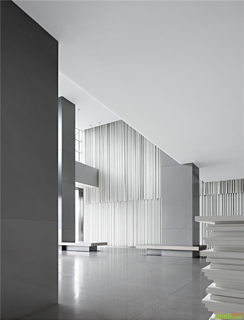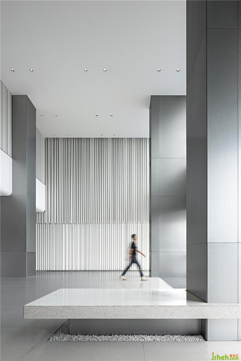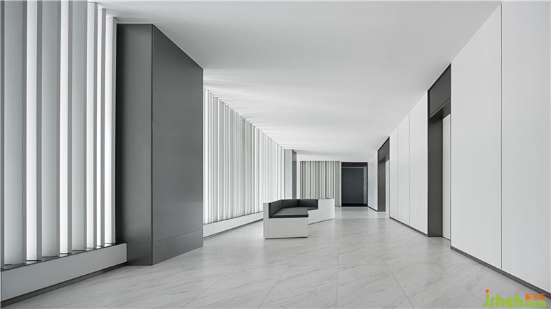 The application of colors is undoubtedly another outstanding feature of the space. The designer of bathroom distinguished the male and female areas through strong color contrast of blue and red by combining the basic colors of the brand. Such method enriched visual impact and offered a touch of art to the gray space focusing on efficiency.