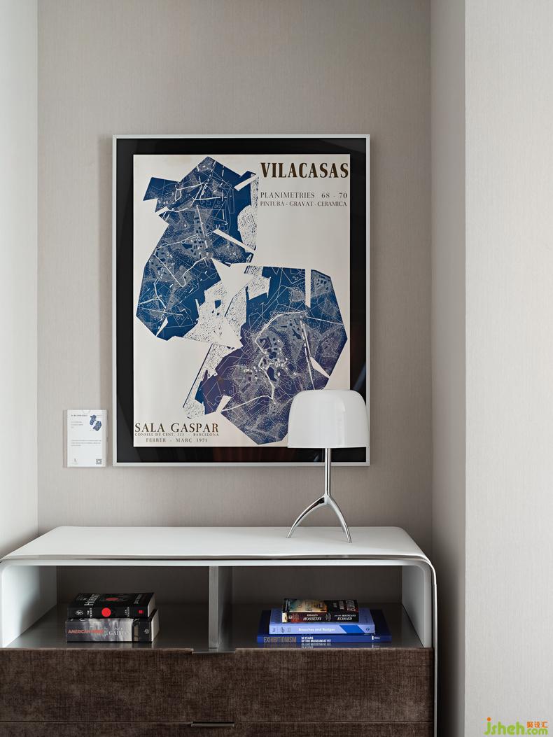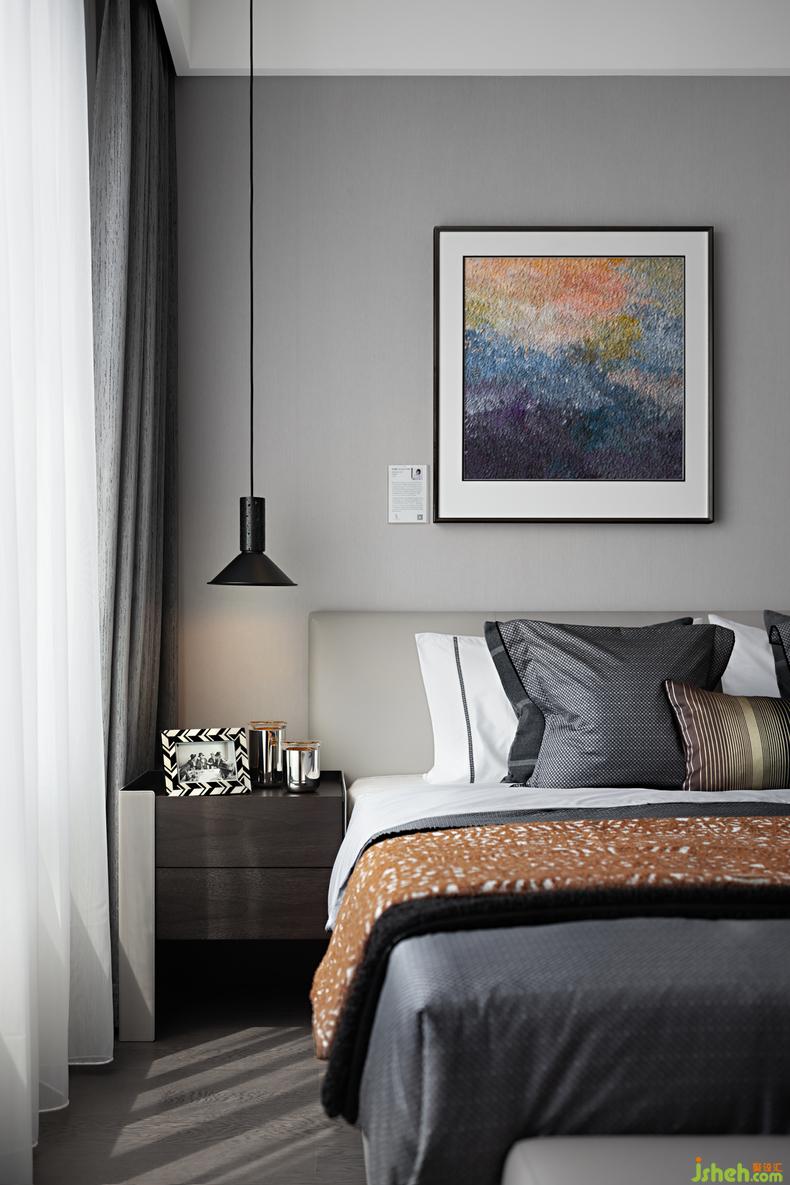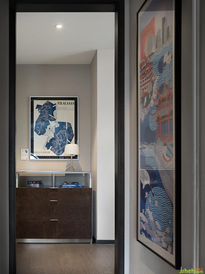 走廊盡頭處特意選擇英國藝術家Rob Pepper的《A Portrait of Hangzhou杭州印象》,以獨特的視角,大膽、優(yōu)雅的筆觸呈現一個獨一無二的杭州印象。臥室則是中國藝術家田丹露的《曙色遠連山色起》,樣板房設計以幻點色彩的藝術手法詮釋一個霧雨朦朧的感覺空間,感受空間中帶來的平和寧靜與治愈身心時的沉醉。