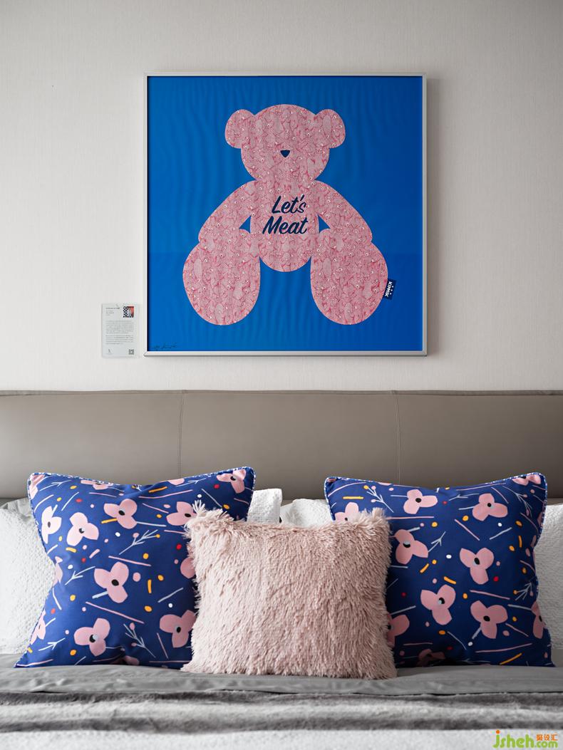 設計師為女兒房精心搭配了潮流藝術家葉子樂的《Let’s Meat Bear 》,別具一格的視覺語言和濃烈色彩的鋪排與沖撞營造女孩空間特有的明快爛漫。