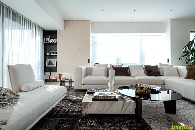 對(duì)于家而言,空間氣質(zhì)影響人的舉手投足,主人的性格秉性最終決定了空間的靈魂。李先生夫妻兩人都是服裝設(shè)計(jì)師,品牌主打暗黑風(fēng)黑色系服裝,工作環(huán)境造就了他們獨(dú)特的品位與挑剔的眼光,因此我們提煉出以黑白灰為DNA的極簡(jiǎn)美學(xué)融入家空間,豪宅設(shè)計(jì)打造一個(gè)干凈、純粹又富有藝術(shù)感的家。