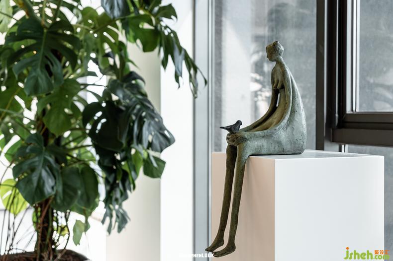 在李先生家里,除了極簡(jiǎn)美學(xué),藝術(shù)感同樣是非常重要的關(guān)鍵詞。通過(guò)藝術(shù)品富有張力的表現(xiàn)力大膽破格沉穩(wěn)的黑白調(diào),讓家的整體空間松弛有度,身體和精神隨著空間節(jié)奏感不自主的跟著律動(dòng),慵懶、閑適且沉醉其中。