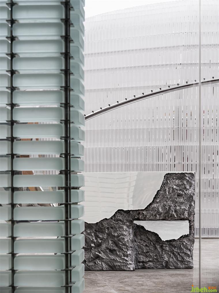 在這場未來遺跡的布景下,華南旗艦店設(shè)計師透過陌生化的視角模擬古典敘事,試圖在視覺與感知層面,構(gòu)筑觀者對未來烏托邦世界的想象。于是,兩種敘事語言在這里穿插呈現(xiàn):一面是現(xiàn)代化的磨砂亞克力材質(zhì),一面是帶有古舊色彩的古堡意象。