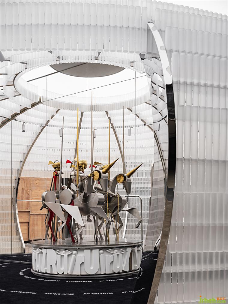 騎士劇場的構(gòu)造,勾勒出超脫日常的藝術(shù)體驗。對此,華南旗艦店設(shè)計師說道:“日常戲劇化的展演,出于對刻板風(fēng)格的挑戰(zhàn)。正如RuirUiruI品牌內(nèi)核中的趣味時髦unisex,跳出框架的場景建構(gòu)帶來的是常理之外的無限世界?!?div id="jjptlvpxzv3d" class="tg_pages">