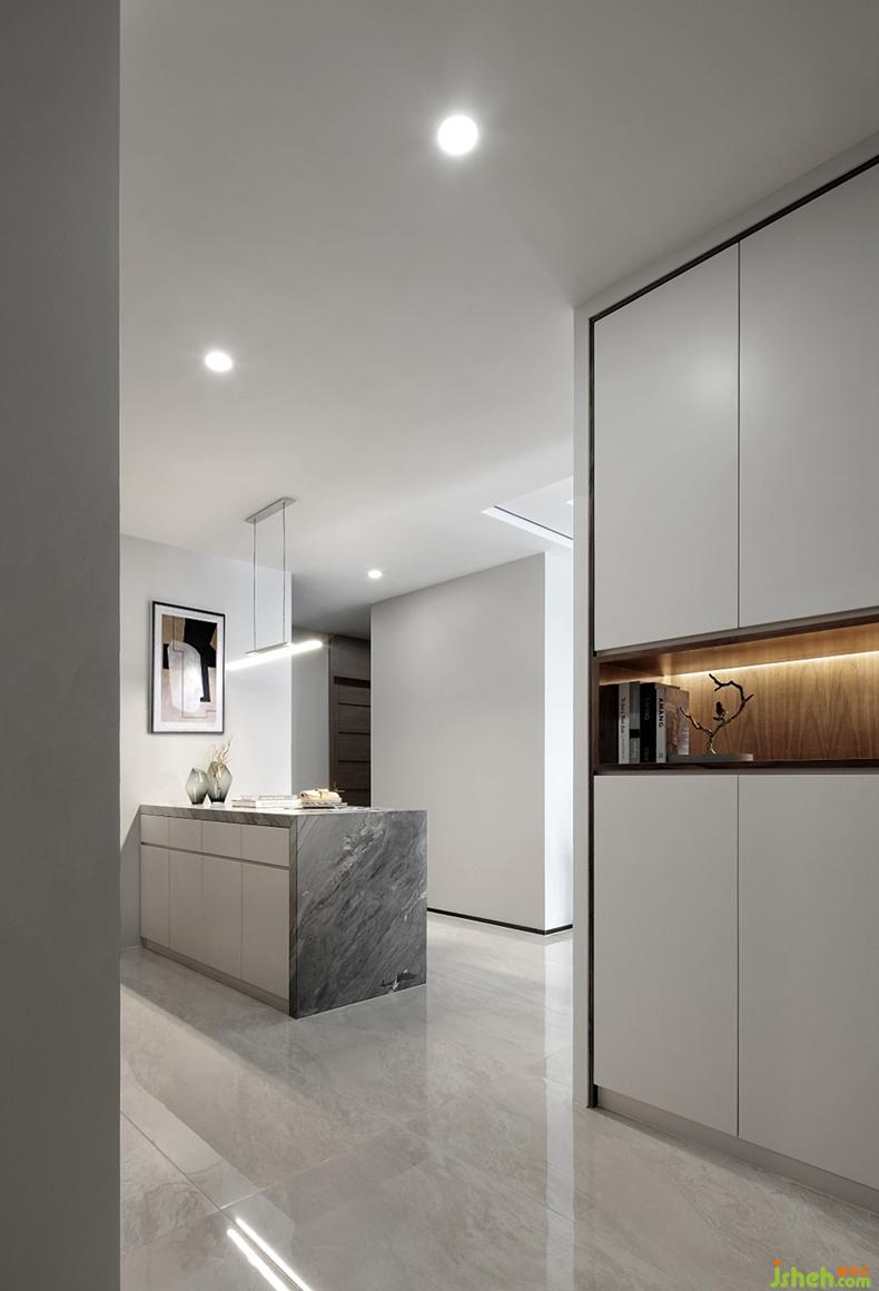步入前廳,仿佛沉浸在寧靜的色調(diào)中,在延伸的視覺印象中循序展開。讓現(xiàn)代主義的空間設(shè)計喚醒著樸實的人居體驗,似乎是回歸自我的怡然自得。