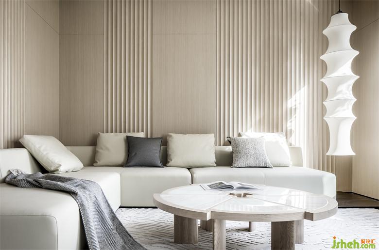 例如,超長島臺連結著入戶電梯直達的雙玄關系統(tǒng)、相對獨立的客廳區(qū)域、270度視野室內(nèi)陽臺、老人房。因此在同一時空軸線下,疊墅樣板房設計這個既開放又獨立空間可以輕松的包裹容納不同活動狀態(tài)、不同年齡的居住者。