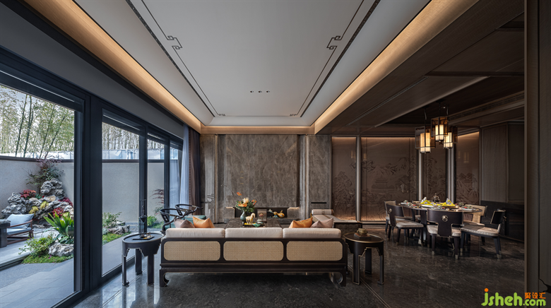 “會(huì)客廳”的定義不僅僅是讓往來賓客閑庭信步,而是以山、石、樹影為自然元素,將舒適寧靜呈現(xiàn)的更加生動(dòng)有層次,在喧鬧的城市里驅(qū)使人們探尋內(nèi)心的烏托邦。