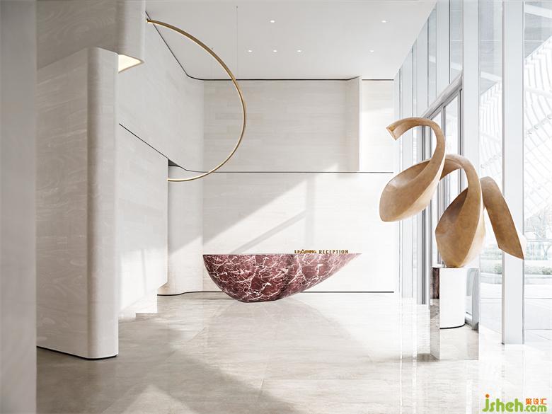 整個(gè)空間摒棄掉傳統(tǒng)的大型隆重的裝飾吊燈,用裝置藝術(shù)的手法去考慮室內(nèi)燈飾的布陳,大量簡(jiǎn)潔干練的弧形環(huán)形的藝術(shù)燈飾穿插其中,猶若星辰運(yùn)行的軌跡。
