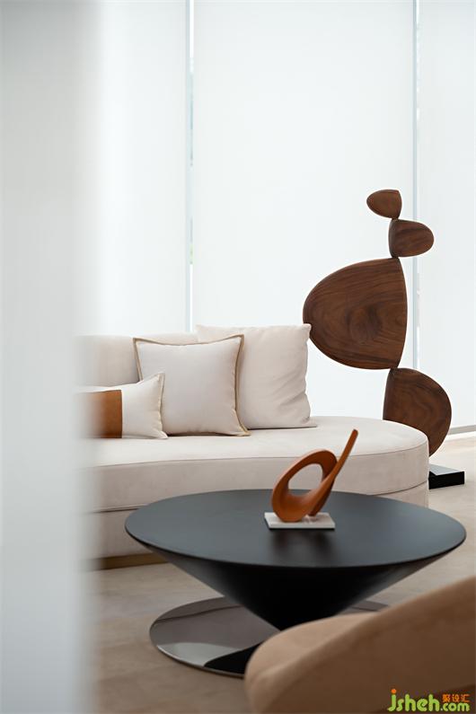 我們試圖保留空間材質(zhì)與色彩的純粹性,只采用色調(diào)柔和相近的材質(zhì),塑造墻地面無邊、連貫的整體感,注重空間形體的豐富度和包裹感帶給人的漫無邊際的想象。