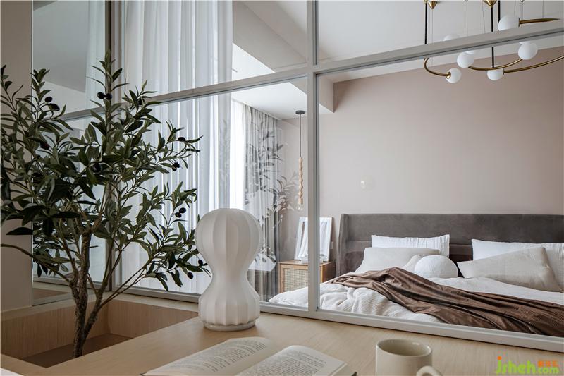 吧臺區(qū)看向客廳寫字臺和主臥。