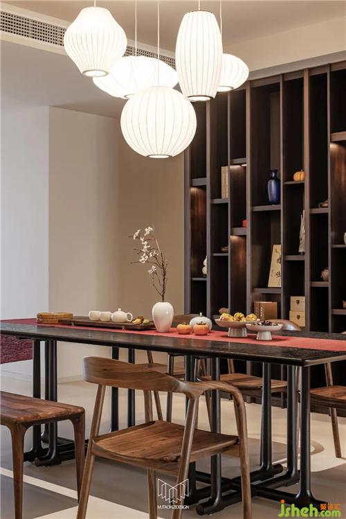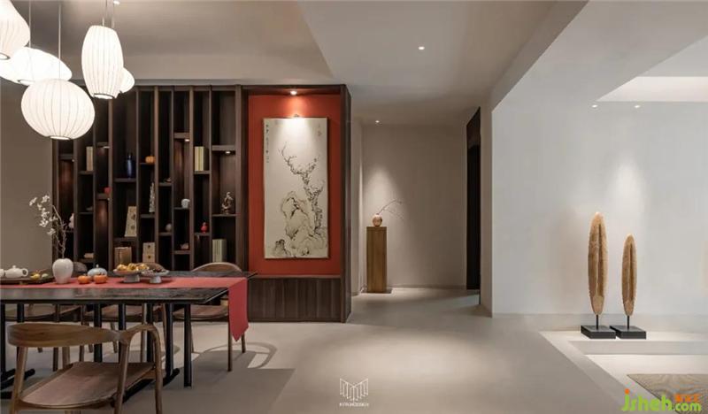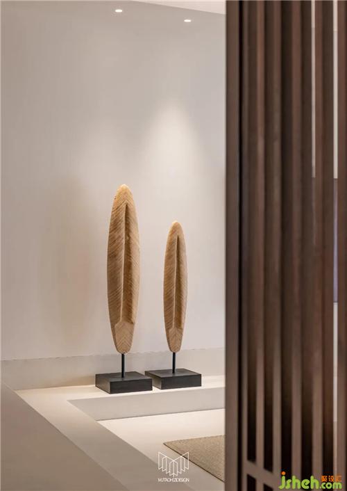 餐桌旁的博古架是每個(gè)來(lái)訪大小朋友的最?lèi)?ài)。像小窗一般的門(mén)洞,隨著旋轉(zhuǎn)可以去到每一個(gè)想去的隔檔。南京裝修設(shè)計(jì)刻意設(shè)置了四套茶具和裝飾于其中:春風(fēng)里年年依舊的桃花,夏雨打濕的荷與石榴,秋水澄澈映青黃不接的佛手,柿子與冬雪一并掛滿枝頭。四時(shí)有序,萬(wàn)物有時(shí)。做時(shí)間的朋友,這是東方人的哲學(xué)。