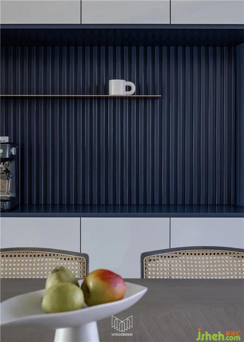 餐廳拆除局部墻體并定制島臺(tái),使餐桌和廚房形成洄游動(dòng)線,L型廚房定制內(nèi)嵌式冰箱和蒸烤箱、洗碗機(jī),南京裝修設(shè)計(jì)在豐富功能的同時(shí)使廚房空間干凈整潔,餐廳放置多人餐桌和定制餐邊柜,可容納多人聚餐,并進(jìn)一步增加儲(chǔ)物量。