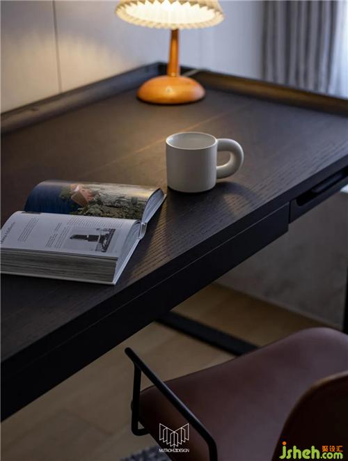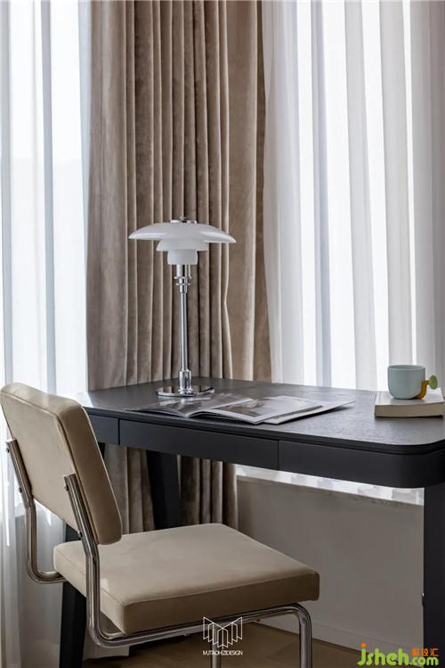 通過分析業(yè)主的生活習(xí)慣和常住人口,書房、客房空間需常以書房功能為主,客房空間為輔,南京裝修設(shè)計通過與材料供應(yīng)商溝通協(xié)調(diào),定制柜體內(nèi)配備墨菲床,在房間常備書桌的情況下兼具睡眠功能。