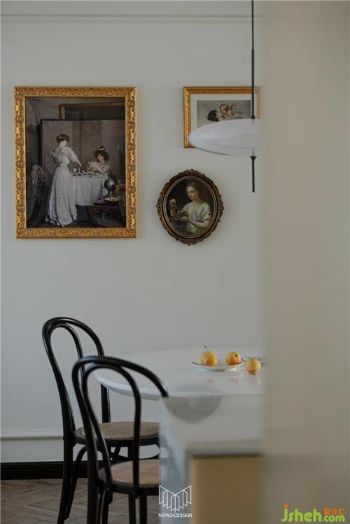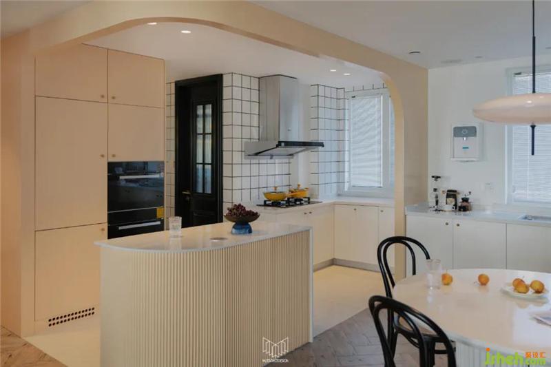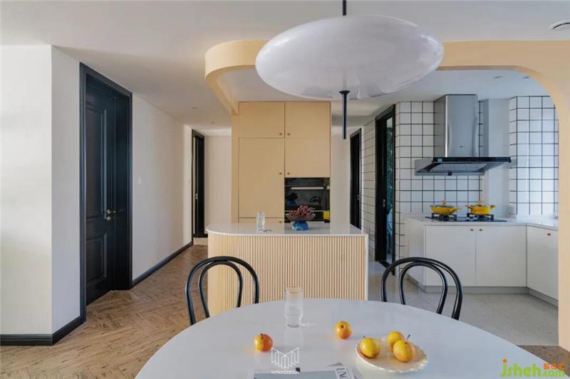 將餐廚一體化,餐廳放置直徑1.1米圓桌更美觀。
