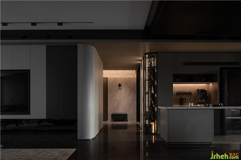 “通透”是公共場(chǎng)域的主要語(yǔ)言,各功能區(qū)域有機(jī)融合,大宅設(shè)計(jì)用細(xì)節(jié)處理表達(dá)情感,注重韻律與秩序感的營(yíng)造,于可行可望之間,介入可居可游的空間片段。
