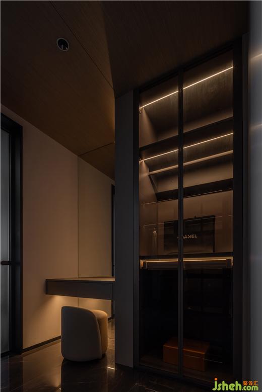 大宅設(shè)計(jì)色彩大膽選用大塊面黑白灰組合,且以深灰(黑)為公共場(chǎng)域主色調(diào),同時(shí)與自然紋理的藝術(shù)涂料和木紋材料相互融合、對(duì)比,為空間增添活力,無一處細(xì)節(jié)不體現(xiàn)業(yè)主的精致品味。