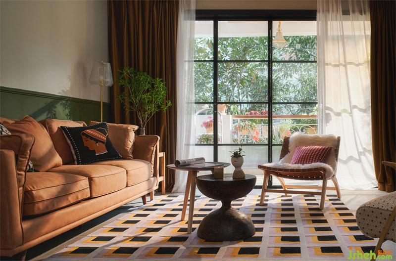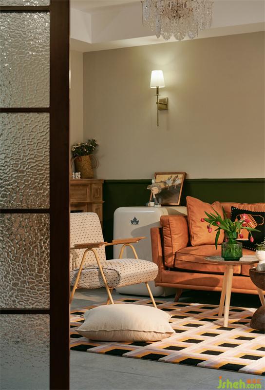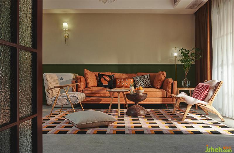 作為主要活動(dòng)區(qū)域的休閑客廳,以鮮明活潑的氛圍為主,風(fēng)格子地毯打破了原本的沉穩(wěn)和擴(kuò)散,將客廳和臥室聯(lián)通,通過折疊門隔斷及聯(lián)通,跳躍出獨(dú)特的韻律空間。