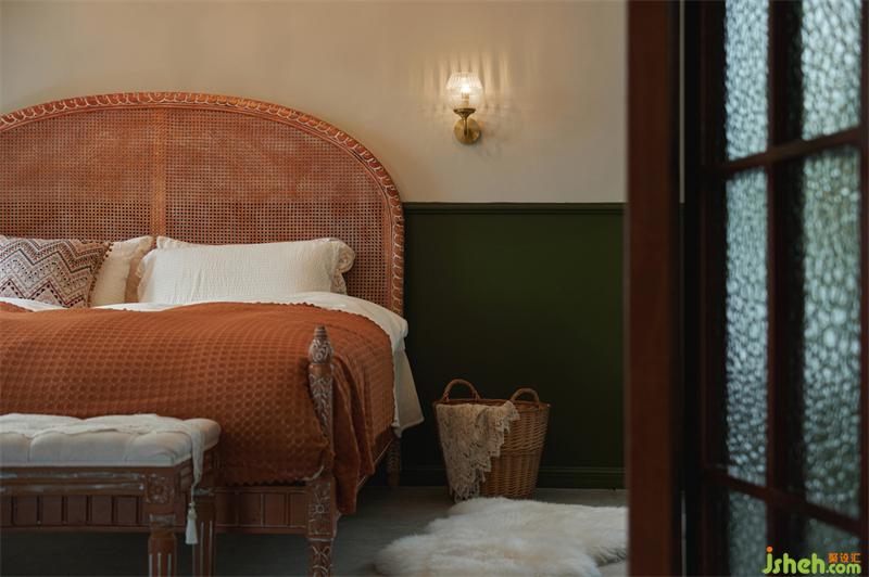 主臥使用大量編織元素,濃濃的手工感,是無限的溫馨與舒適,推開冰花藝術(shù)玻璃門與客廳相連接,被包圍的親和感迅速向周圍散開。
