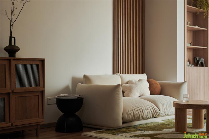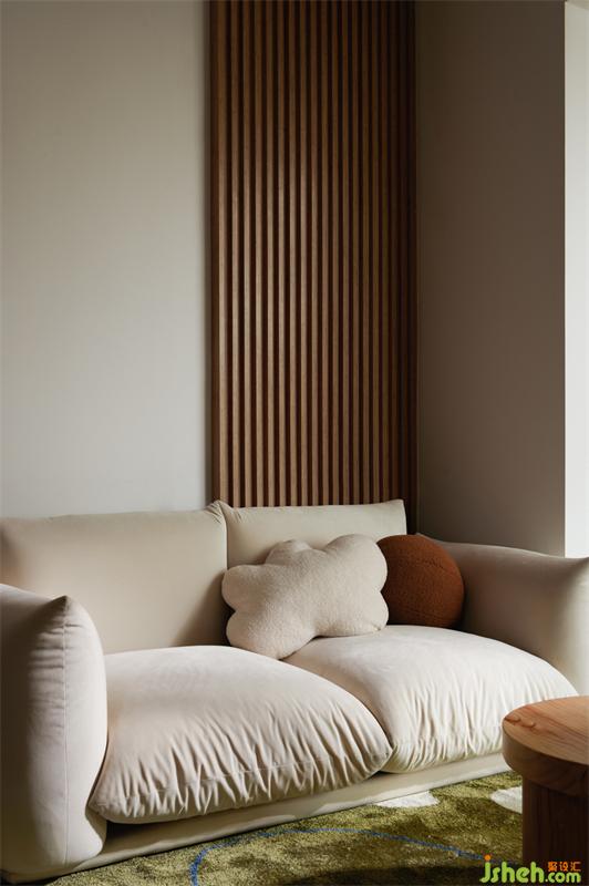 去除繁雜的木制家具,選用更加柔軟低矮的家居產(chǎn)品,低矮可顯現(xiàn)空間高挺,柔軟的家具選擇更符合年輕人的需求,松軟、舒適,回家累了便可躺在軟軟的沙發(fā)上,身心都得到了休息,便是“客廳門外紛紛擾擾,門后清凈自在”。