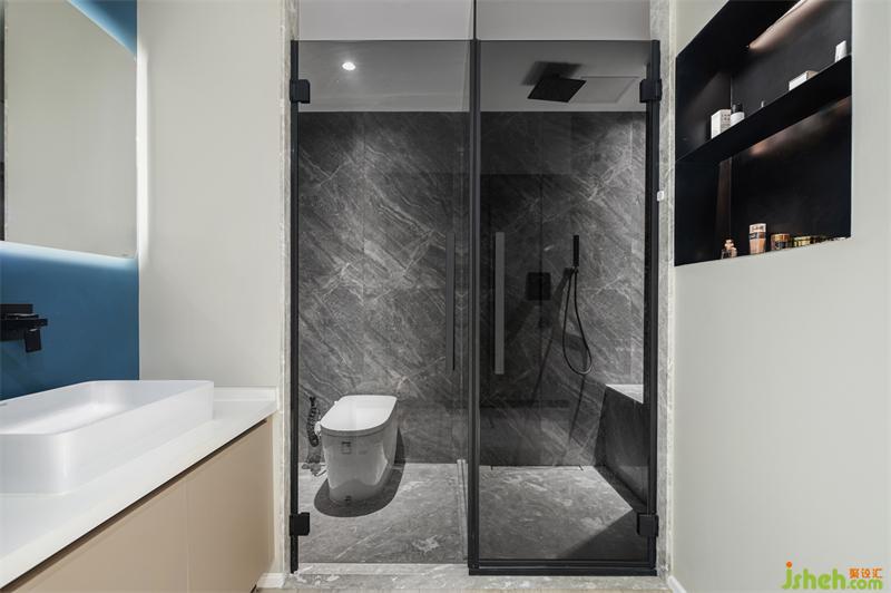 主衛(wèi)和衣帽間設(shè)計(jì)為開放空間,將各個(gè)功能區(qū)域化零為整,空間利用率最大化。