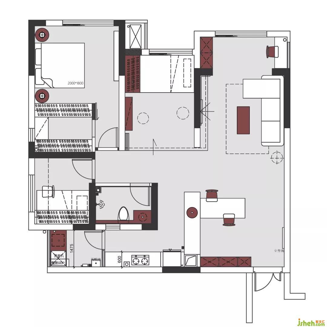 此戶型格局方正,對(duì)應(yīng)功能分區(qū)都合理