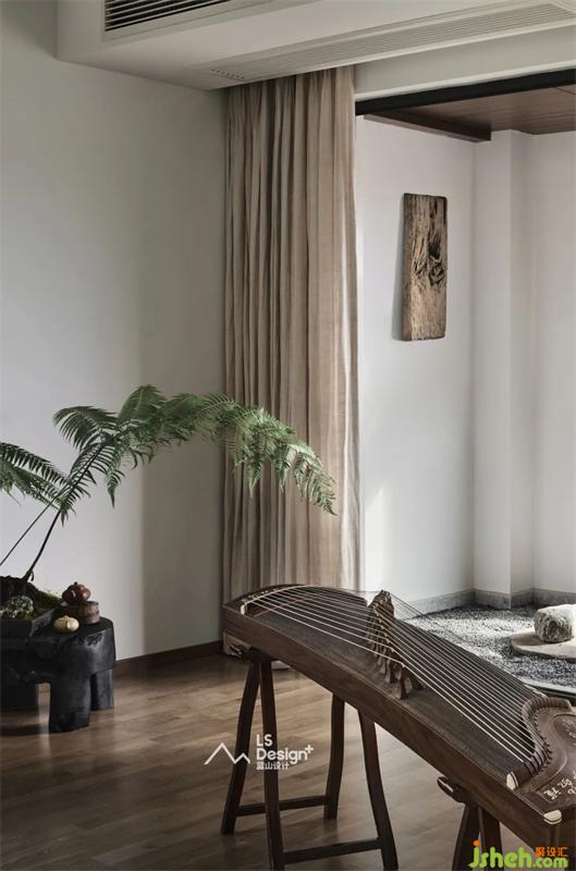 「無客廳」設(shè)計(jì)是周子鑒根據(jù)空間主人的生活狀態(tài)而定制的,晚飯后一家人共同習(xí)字、彈琴是唯一的娛樂項(xiàng)目,因此客廳的一臺古箏已足夠支撐整個(gè)空間的核心。