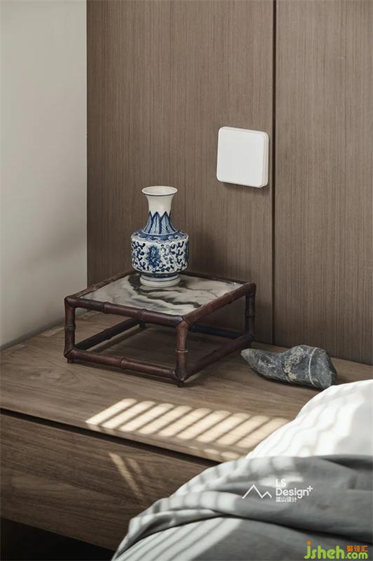 屋主淘來的古玩、太湖石、石墩,“借山引水”般地將凸顯自然的物件引入空間之中,點(diǎn)綴中凸顯與主人相匹配的氣質(zhì)。