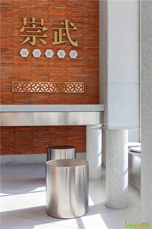 單里(在閩語語中是“等你”的意思)立足閩南本土,為閩南新式茶飲的新品牌。泉州餐飲設(shè)計室內(nèi)紅磚墻面上精致復(fù)古的黃銅字——“崇武”二字,點明了空間所在地為閩南崇武小鎮(zhèn)。