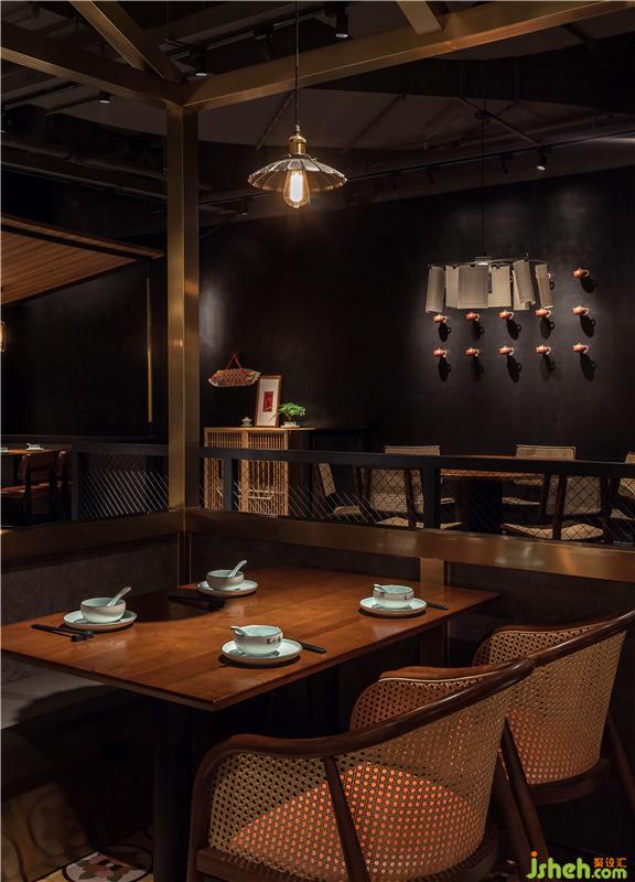 在照明設(shè)計(jì)上,整個(gè)空間采用暖色系。在心理學(xué)的角度上來講,暖色系更能夠刺激食欲,而在暖色調(diào)的燈光下進(jìn)餐,也會顯得更加浪漫富有情調(diào)。用餐區(qū)域強(qiáng)調(diào)了局部照明,以實(shí)用性與情調(diào)兼具為出發(fā)點(diǎn),在局部照明燈具的選擇上使用了復(fù)古懷舊的小吊燈泉州餐飲設(shè)計(jì)。