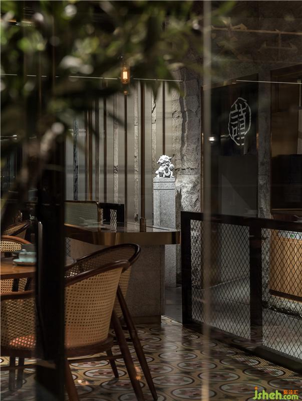 在餐廳裝飾材料設(shè)計(jì)使用上,大量采用泉州白花崗巖裝飾、閩南老花磚、泉州惠安石雕、石頭茶臺等一系列老泉州記憶的元素來設(shè)計(jì)構(gòu)造整個(gè)餐廳空間泉州餐飲設(shè)計(jì)。