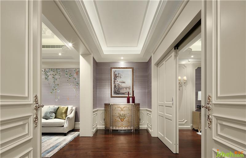主臥門廳:門廳放著一個(gè)古典的玄關(guān)柜,高雅的底蘊(yùn),開放的姿態(tài),尊貴的精細(xì),展示的淋漓盡致。別墅裝修設(shè)計(jì)