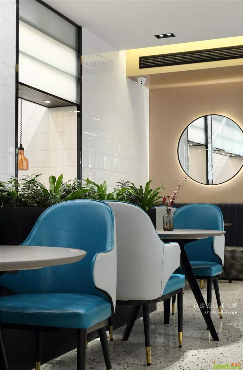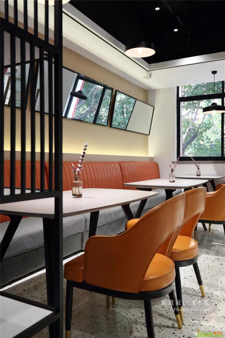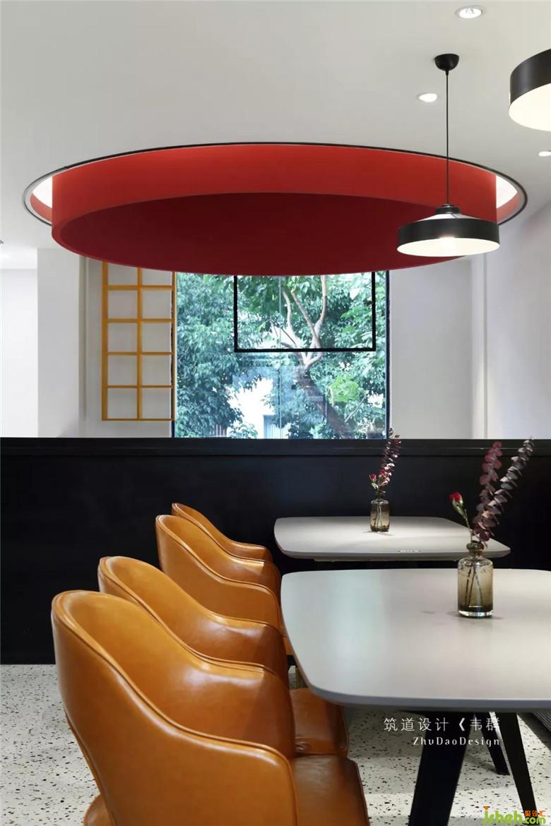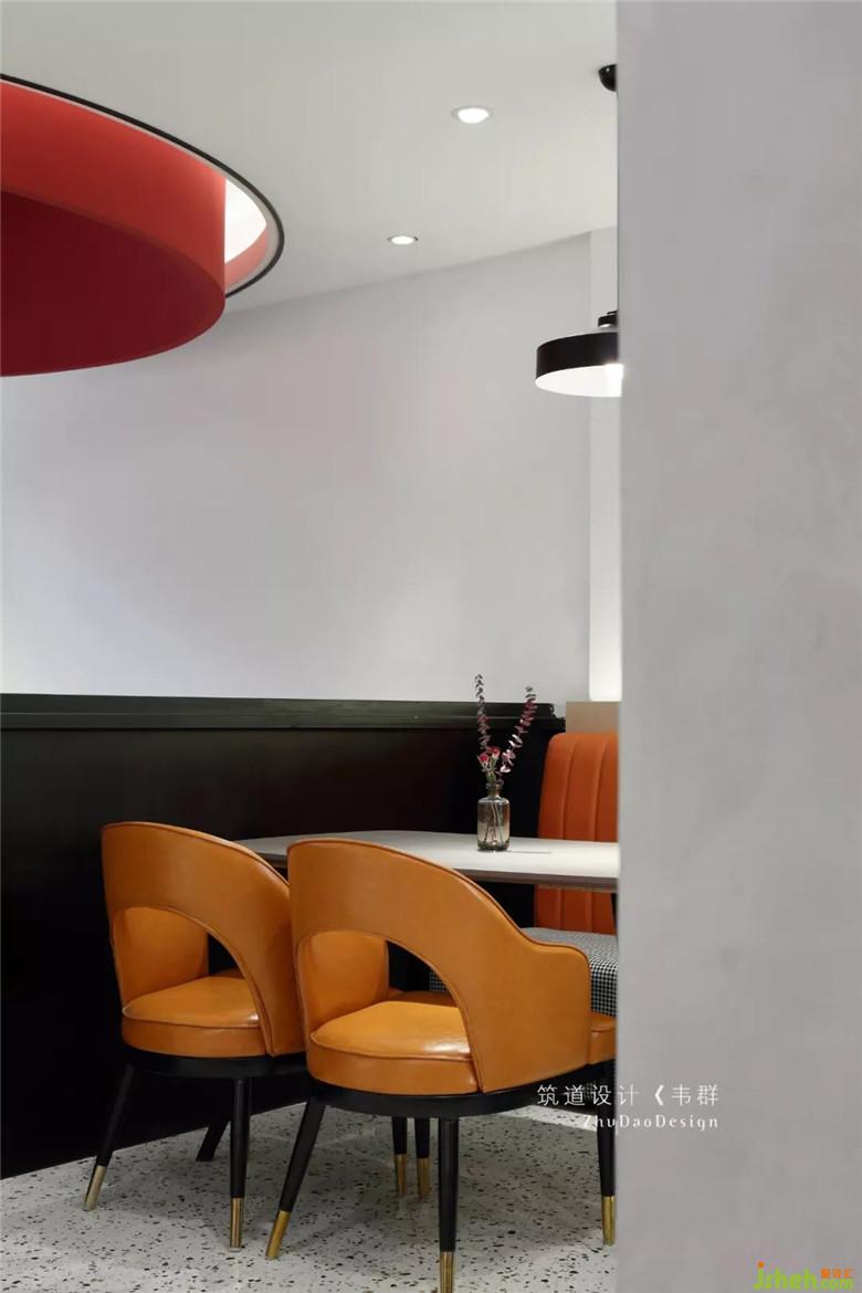 主要的用餐區(qū)都集中在二樓。利用窗邊結(jié)構(gòu)的凹凸關(guān)系,放入不同餐位的桌椅,很好地融進(jìn)窗邊,再輔以整幅落地窗,使得最大限度地納入采光,好似有放大空間的效果。